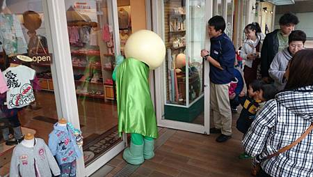 我真的要說這個地方真的是小孩的天堂,食衣住行育樂樣樣都有阿!泰瑞先生剛到的時候,剛好看到哈密瓜超人出來巡禮拍照,他現在探頭進去那個地方,是麵包超人理髮廳阿!!!!有超多小孩在那邊等著剪頭髮~~~