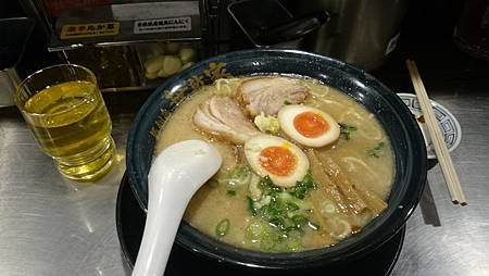 很快的泰瑞先生點的麵上來了~~一份是肉玉麵,另一份是旨辛麵,我還是比較愛肉玉麵~~果然還是愛肉欲阿(誤),但老實講無敵家真的無敵,不論是入口即化的叉燒,還是濃郁的湯頭,甚至是富有咬勁又能沾附湯頭的捲麵都是一絕啊!